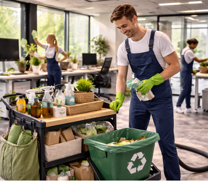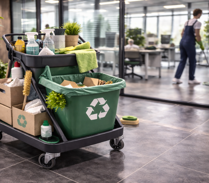 We actively reduce environmental impact by using eco-friendly cleaning chemicals, recycling product bottles, and implementing responsible waste management systems. Our processes are designed to minimize plastic waste by promoting recycling and reuse, ensuring that materials are used efficiently and responsibly. We use biodegradable gloves, sustainable supplies, and environmentally safe products that reduce harmful chemical exposure and support healthier indoor environments. By continuously improving our processes and adopting sustainable materials, we help businesses lower their environmental footprint while ensuring safe, effective, and reliable hygiene solutions.